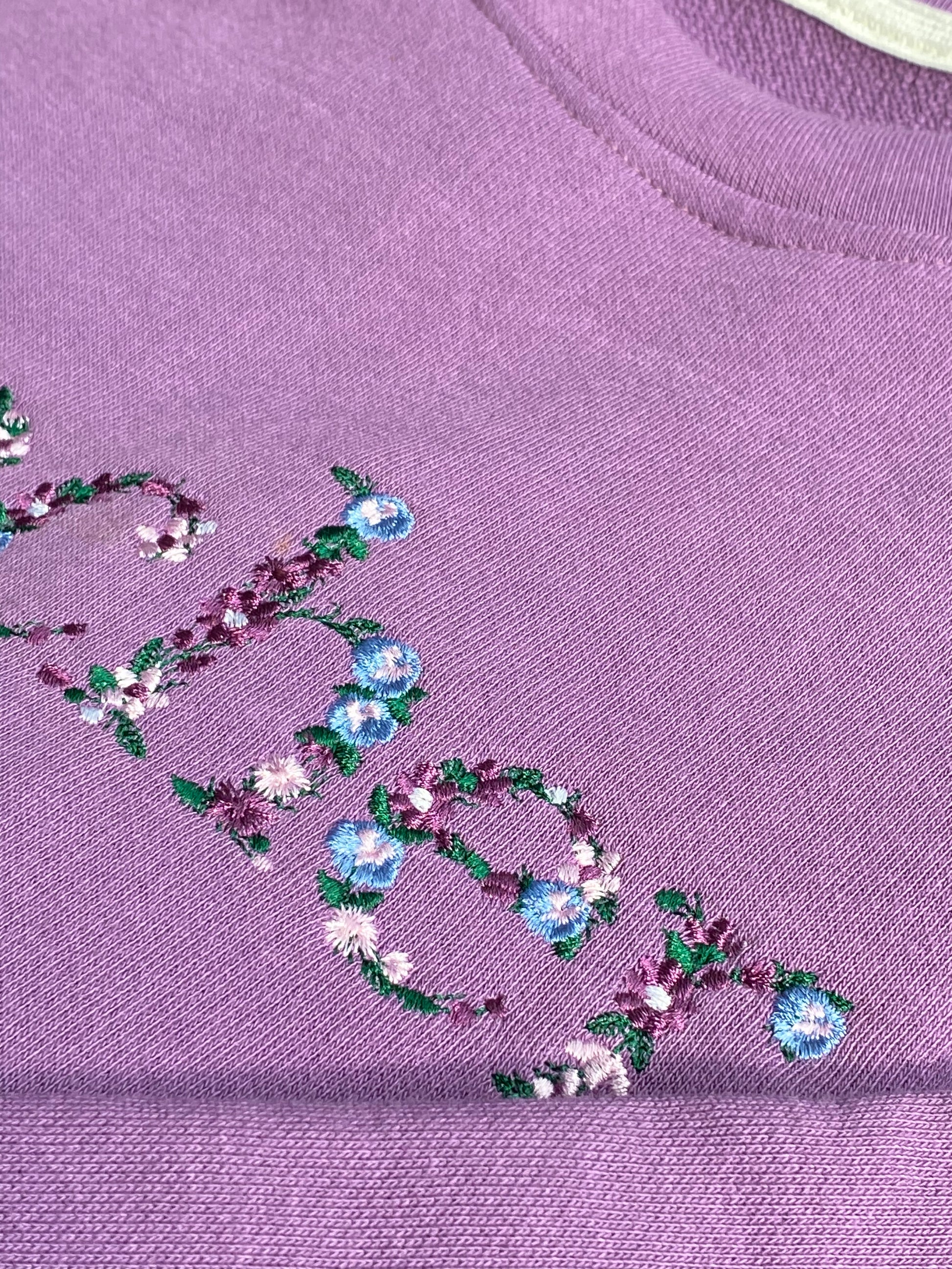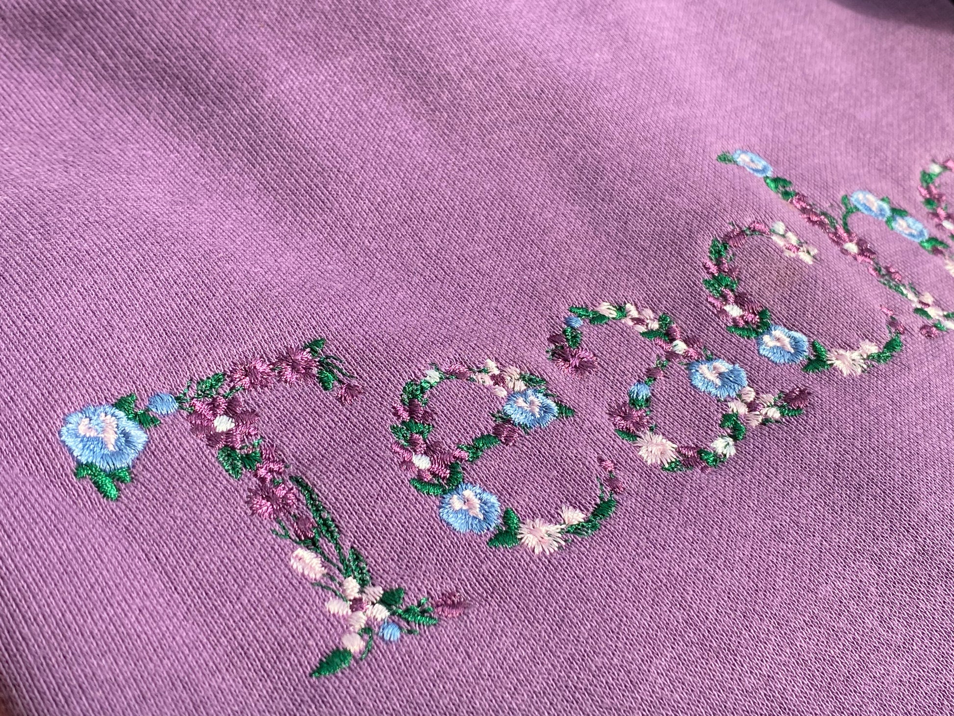 Mẫu thêu áo sweater chữ hoa Teacher trên áo nỉ tím, món quà dành cho người phụ nữ tuyệt vời nhất