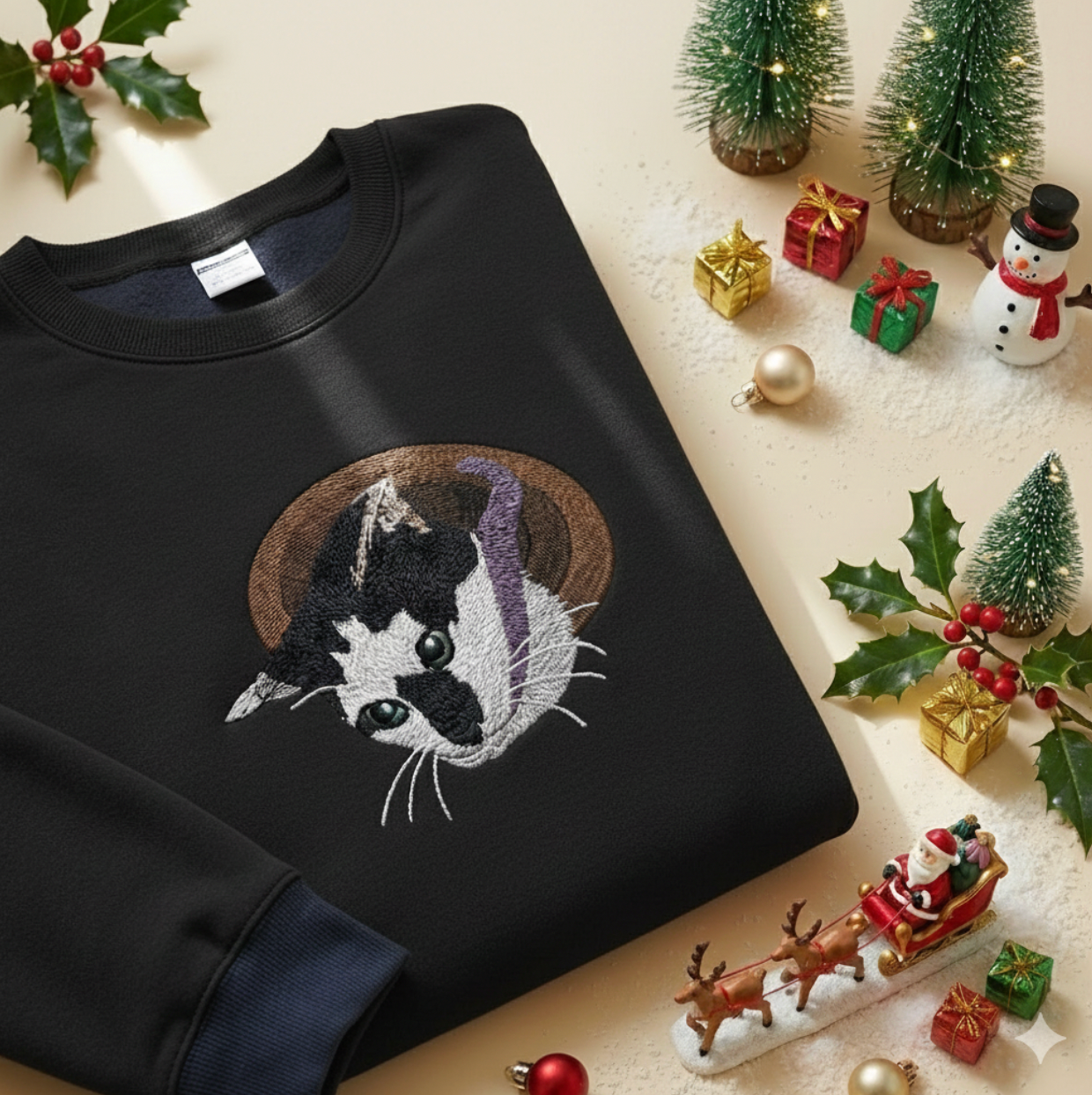 Hình thêu 1 mặt pet siêu chi tiết trên áo nỉ, tặng miễn phí tên/icon trên tay áo.