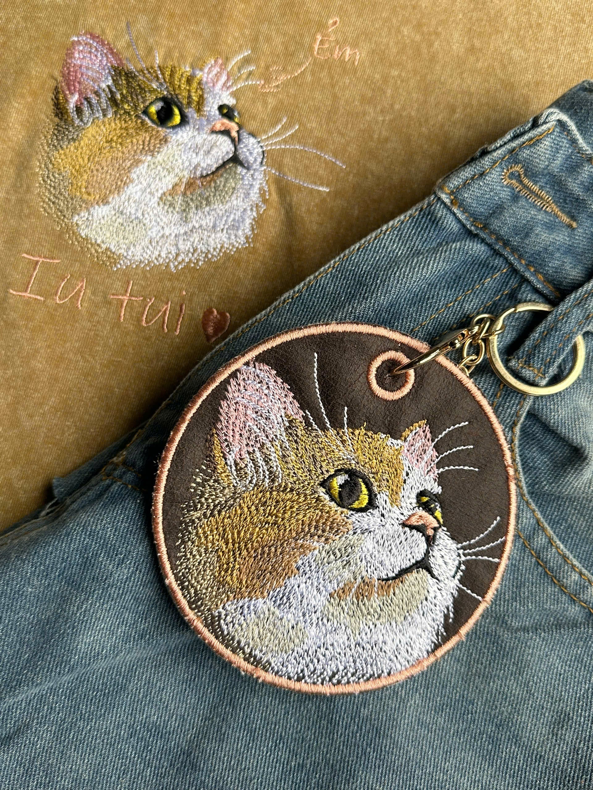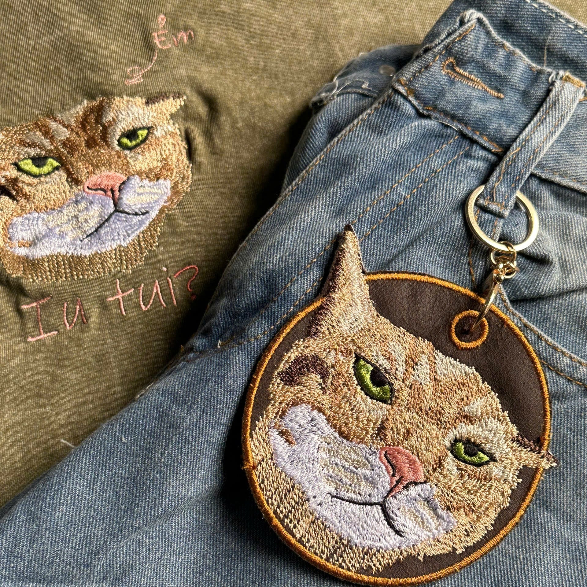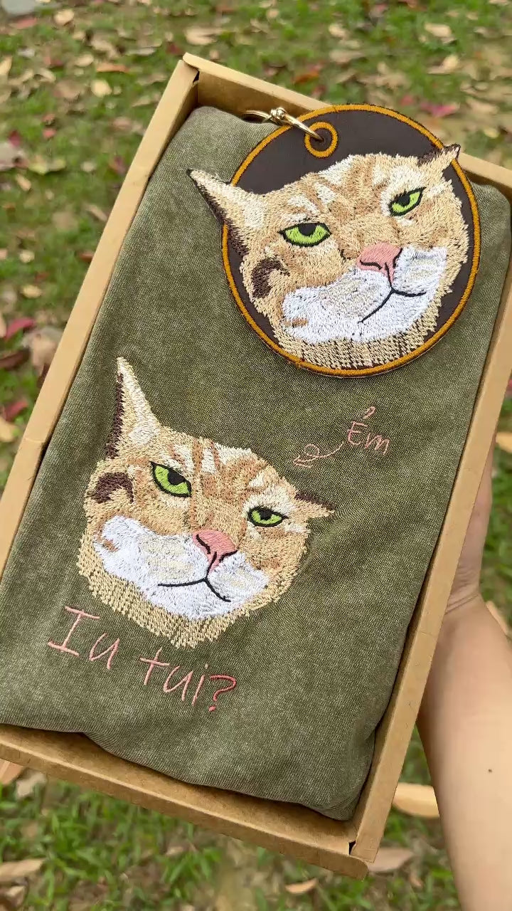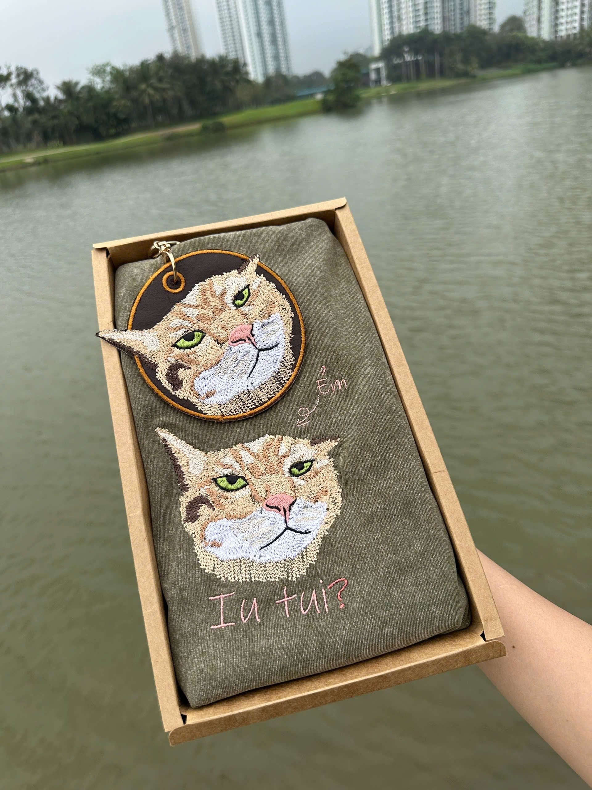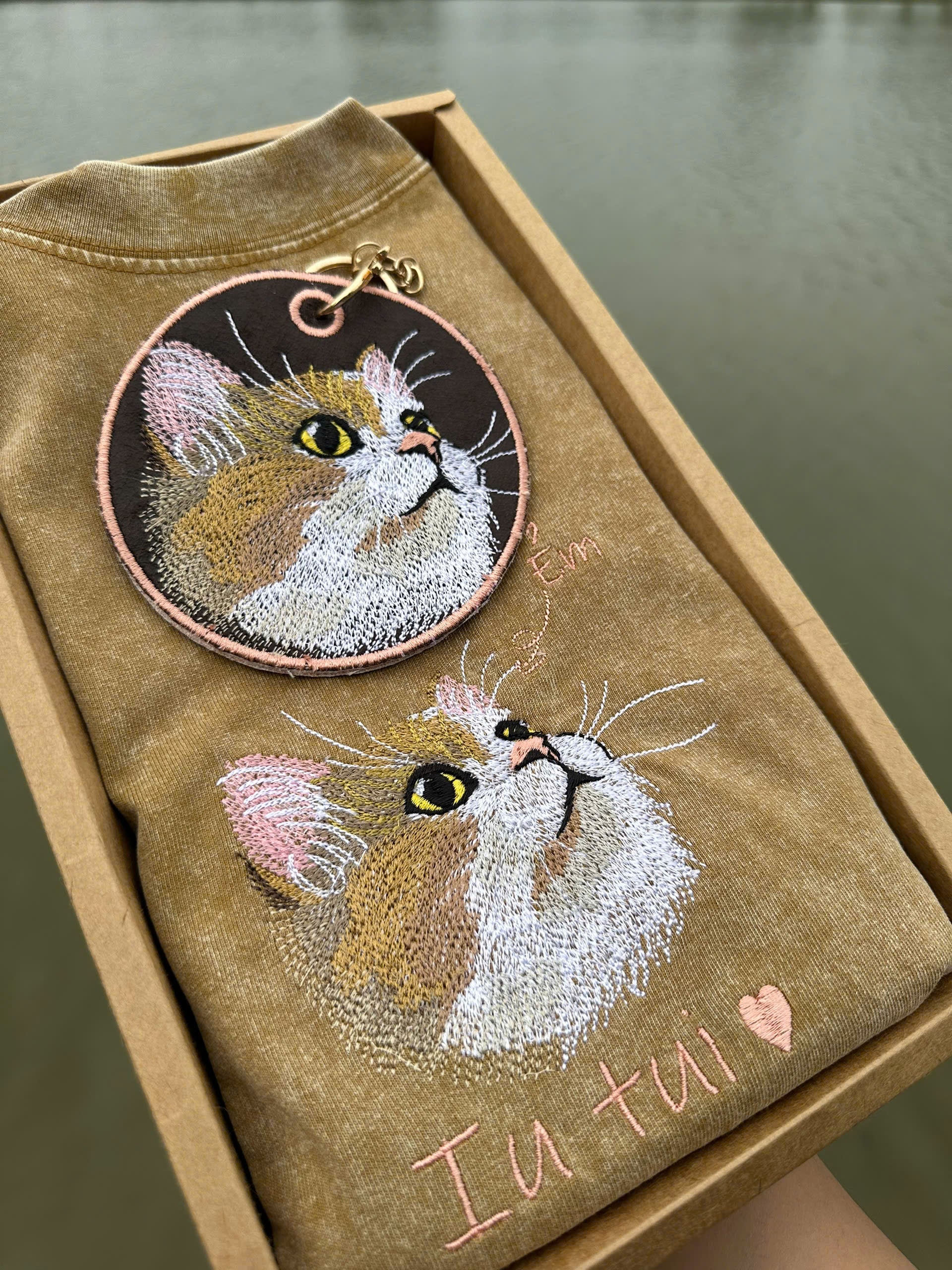 Set 2 món thiết kế thú cưng ẻm iu tui: Áo phông giặt loang + móc khóa