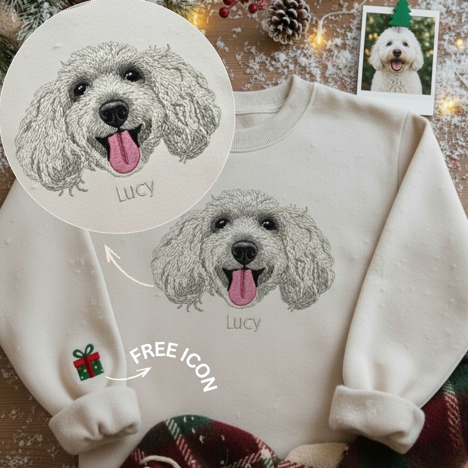 Hình thêu 1 mặt "bé iu" siêu chi tiết trên áo nỉ cổ tròn, miễn phí hình thêu tên/icon trên tay áo