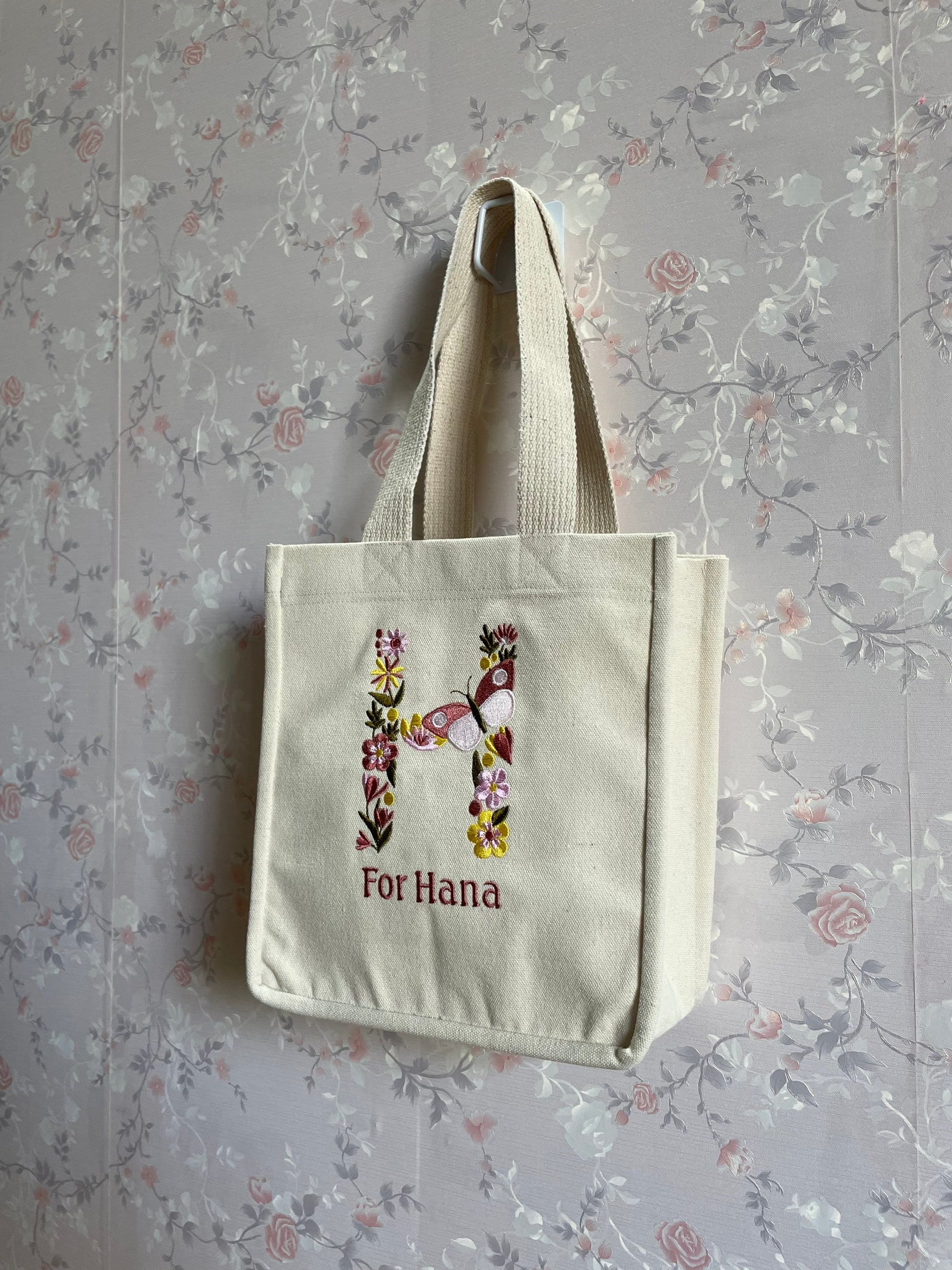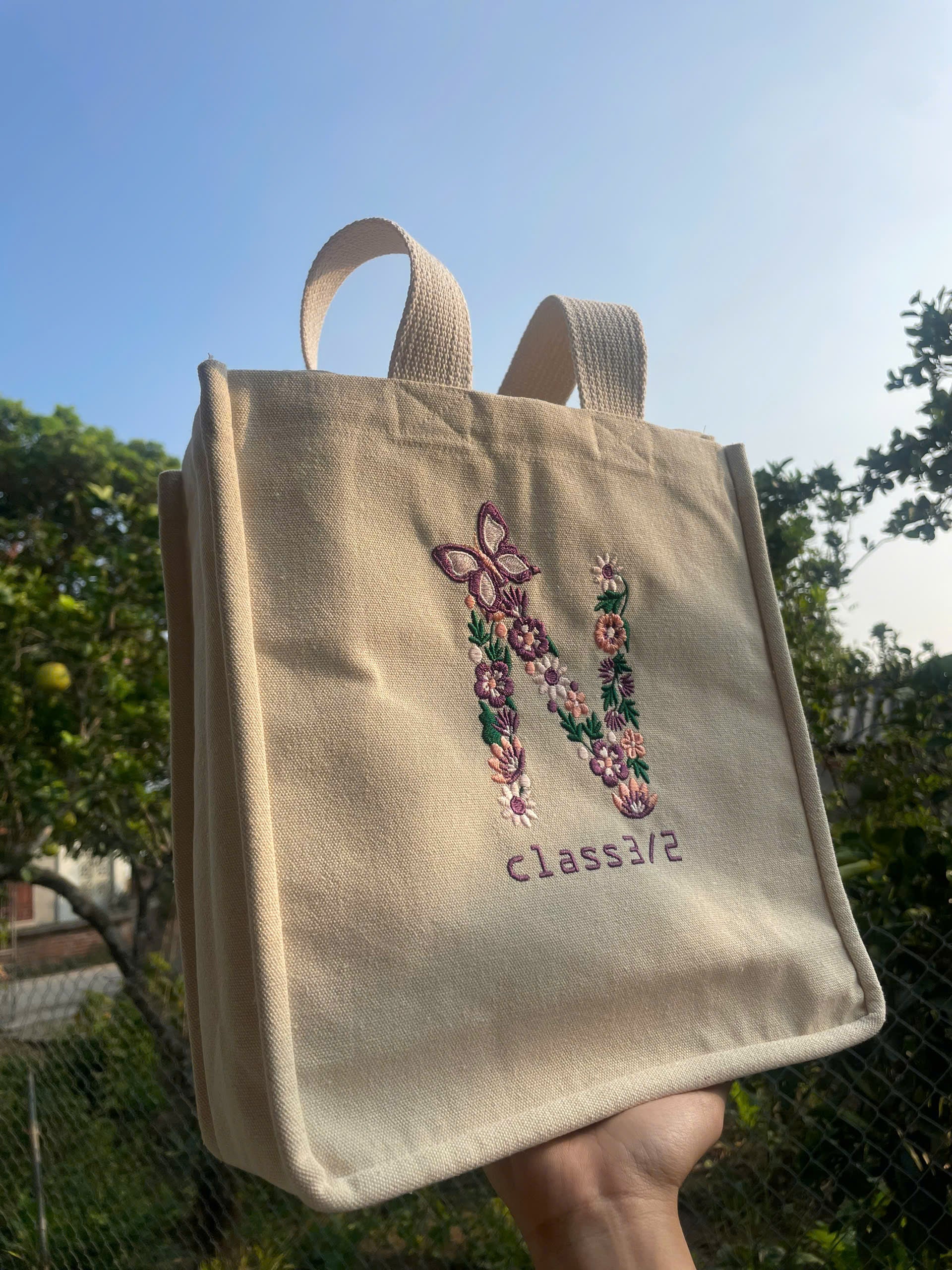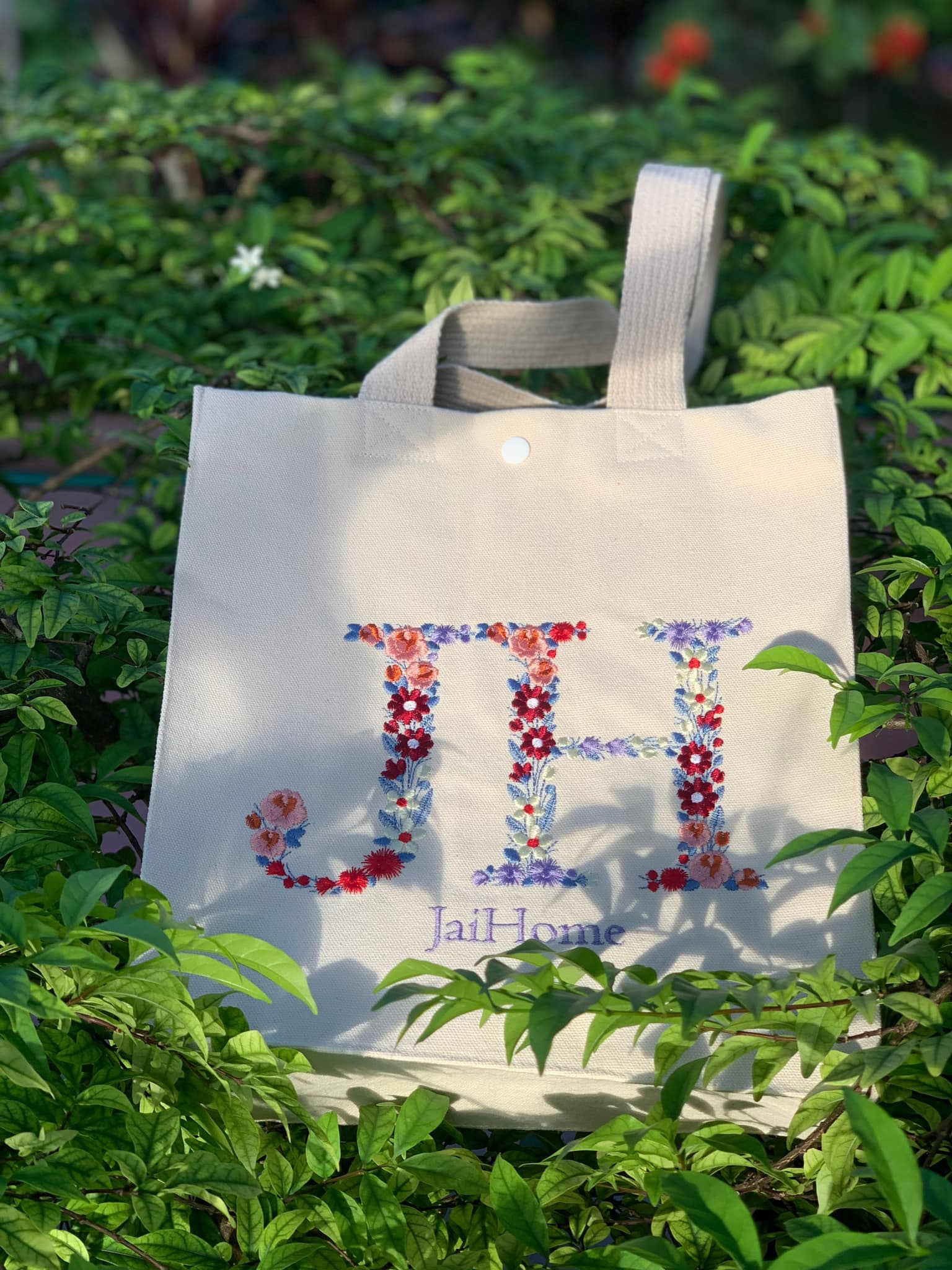 Túi tote thêu chữ hoa tên riêng theo yêu cầu là món quà cá nhân hóa trang nhã và tuyệt vời, với 2 phần tùy chỉnh