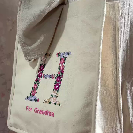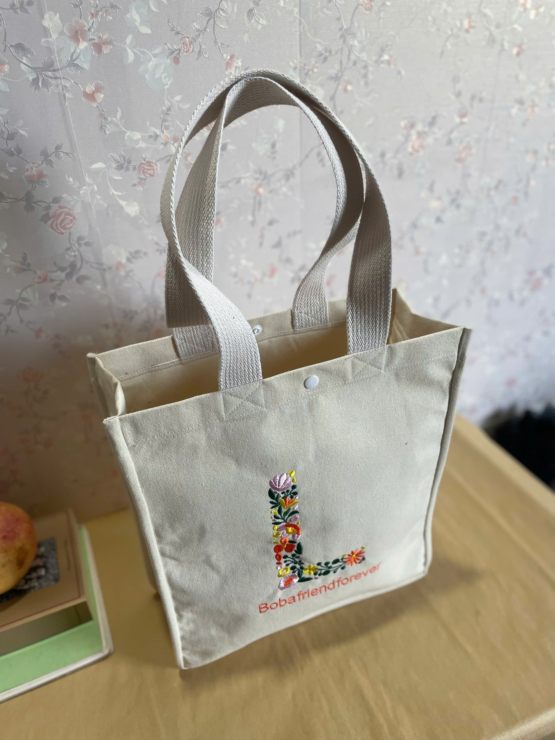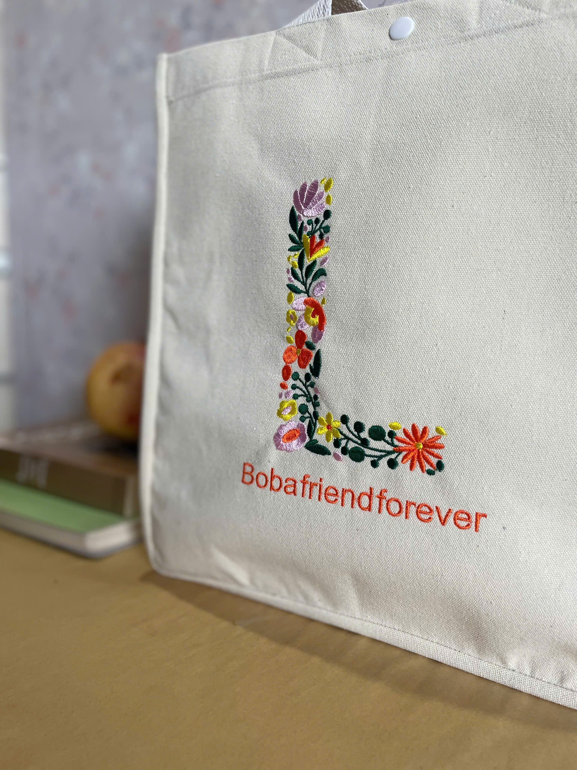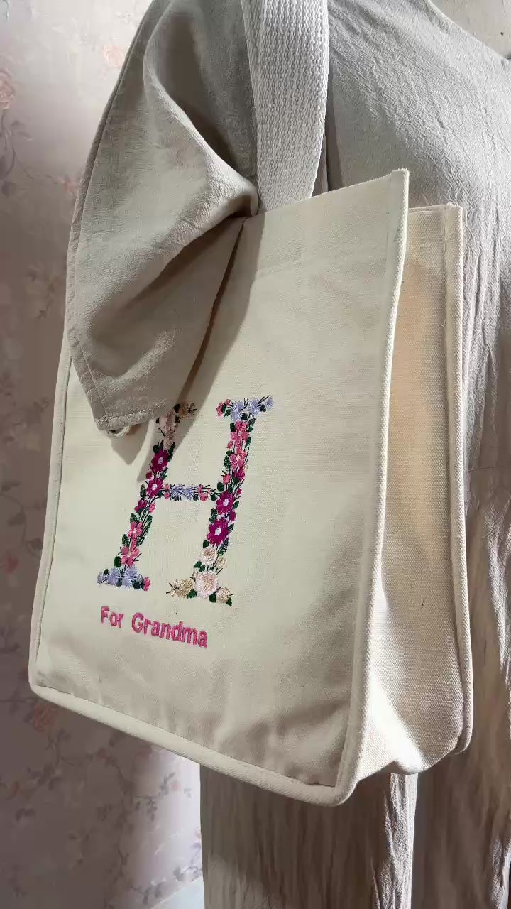 Túi tote thêu chữ hoa tên riêng theo yêu cầu là món quà cá nhân hóa trang nhã và tuyệt vời, với 2 phần tùy chỉnh