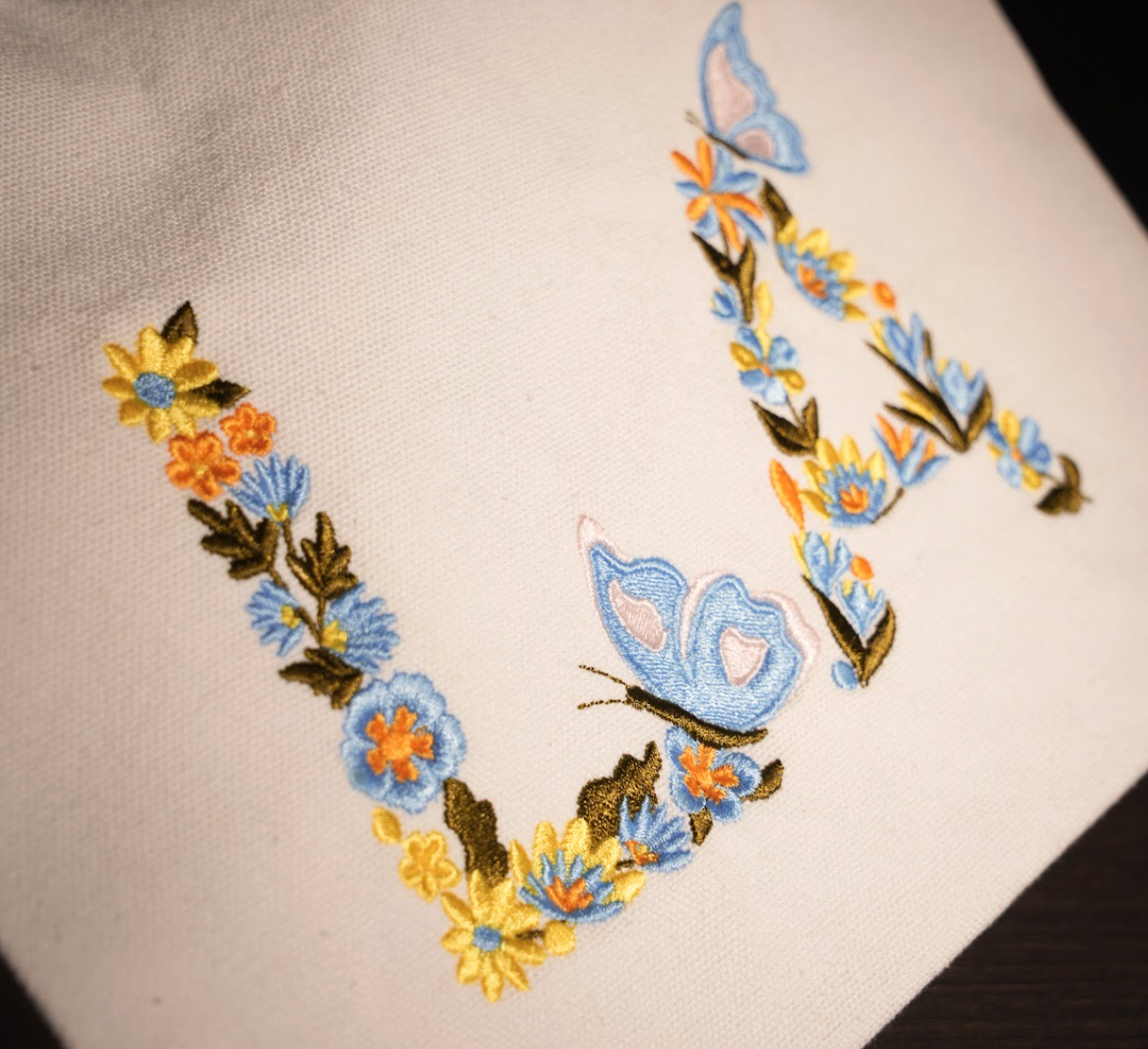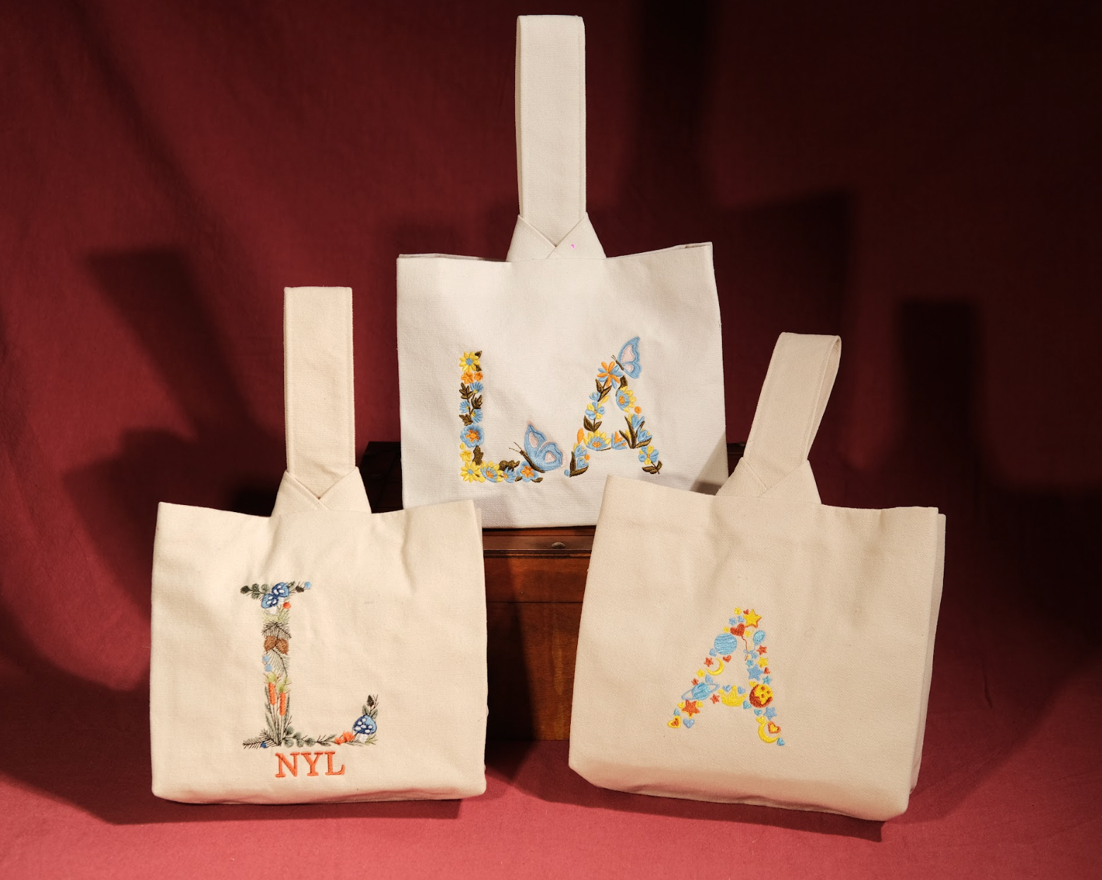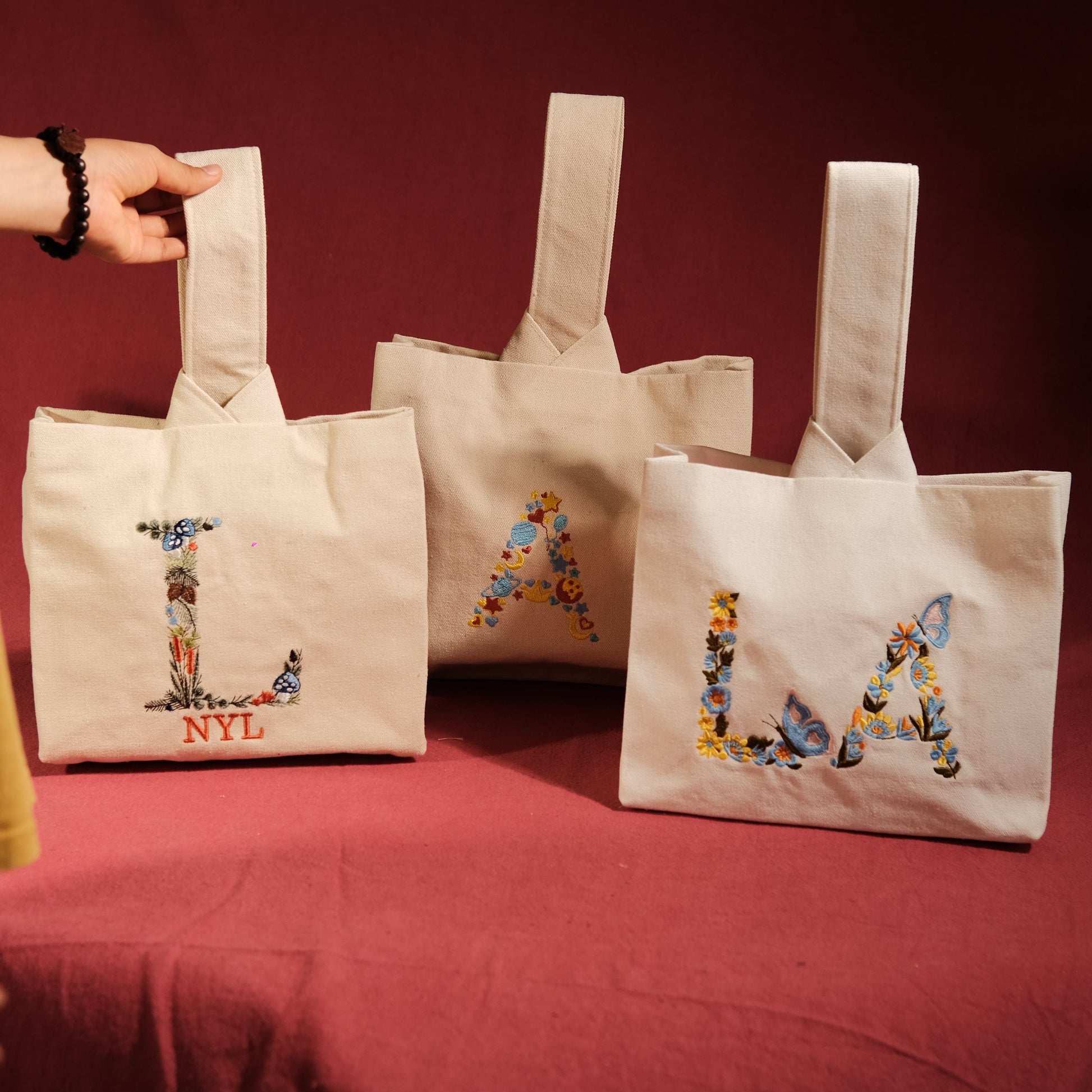 Túi đậu 1 quai (20*25cm) thêu chữ cái phối hoa