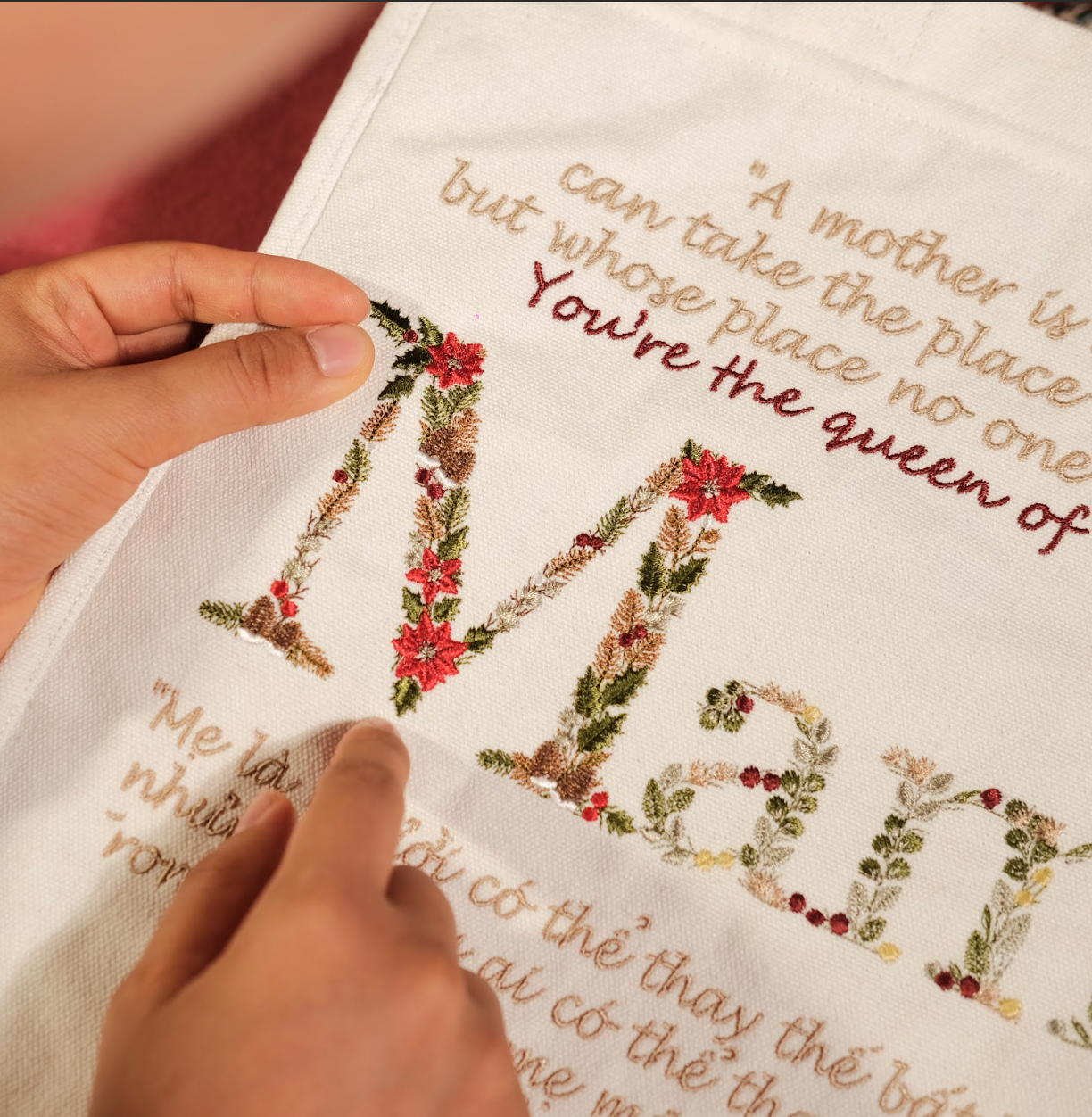 Túi tote thêu chữ Mama tặng mẹ kích thước 35x38cm đựng được laptop 16 inch